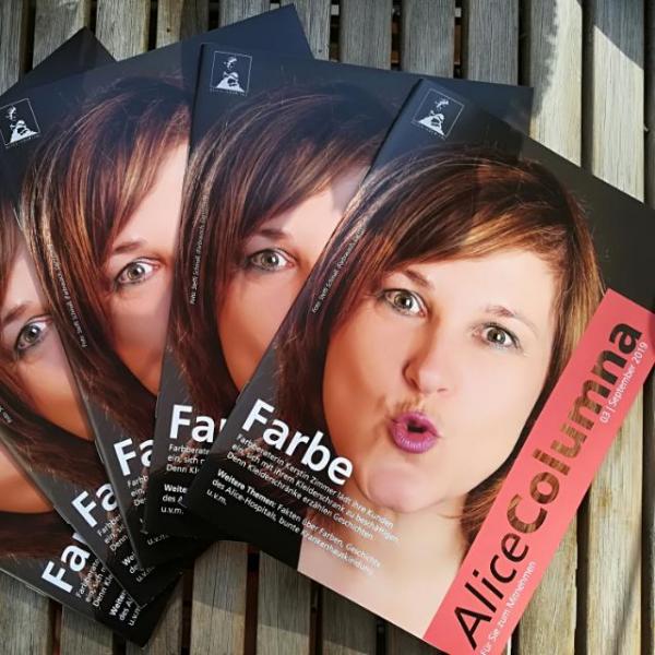 Ich werde Covergirl für die 10. Ausgabe der Alice Columna, Magazin des Alice Hospital in Darmstadt. Die Journalistin Evelyn Bongiorno fragt mir zum Thema "Farbe" Löcher in den Bauch.